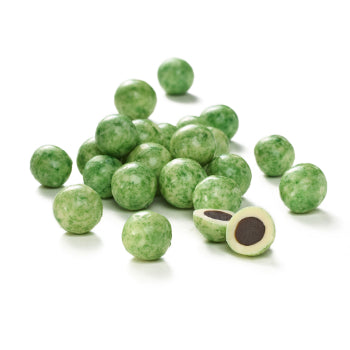 OJ Choklad Lakritzkugeln, Birne sind feine, dragierte Schokoladenkugeln aus weißer Schokolade mit einem herzhaften Salzlakritzkern und Birnengeschmack.